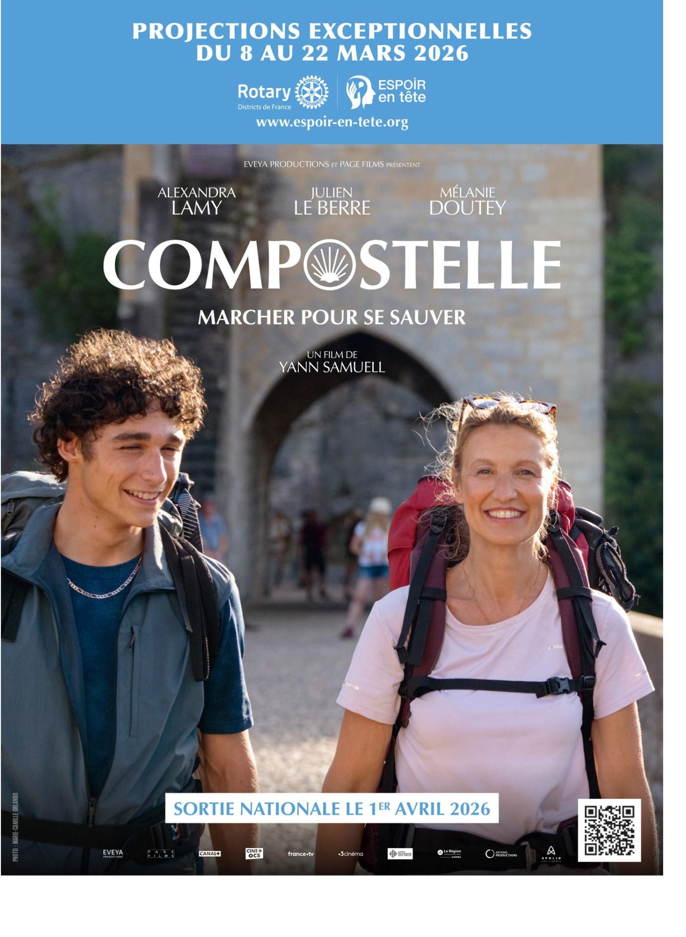 Le Film « Compostelle » réalisé par Yann Samuell avec comme acteurs Alexandra Lamy, Julien Le Berre et Mélanie Doutey fera l’objet d’une avant-première le VENDREDI 13 MARS à 20h au cinéma Le Majestic. Une projection en partenariat avec le Rotary Club de Meaux, dans le cadre de l’opération « Espoir en tête » qui récolte des fonds pour la recherche sur les maladies du cerveau. Le film qui avait été tourné en mai 2025, sortira en salle le 1er avril. C’est une adaptation du livre Marche et invente ta vie de Bernard Olivier.